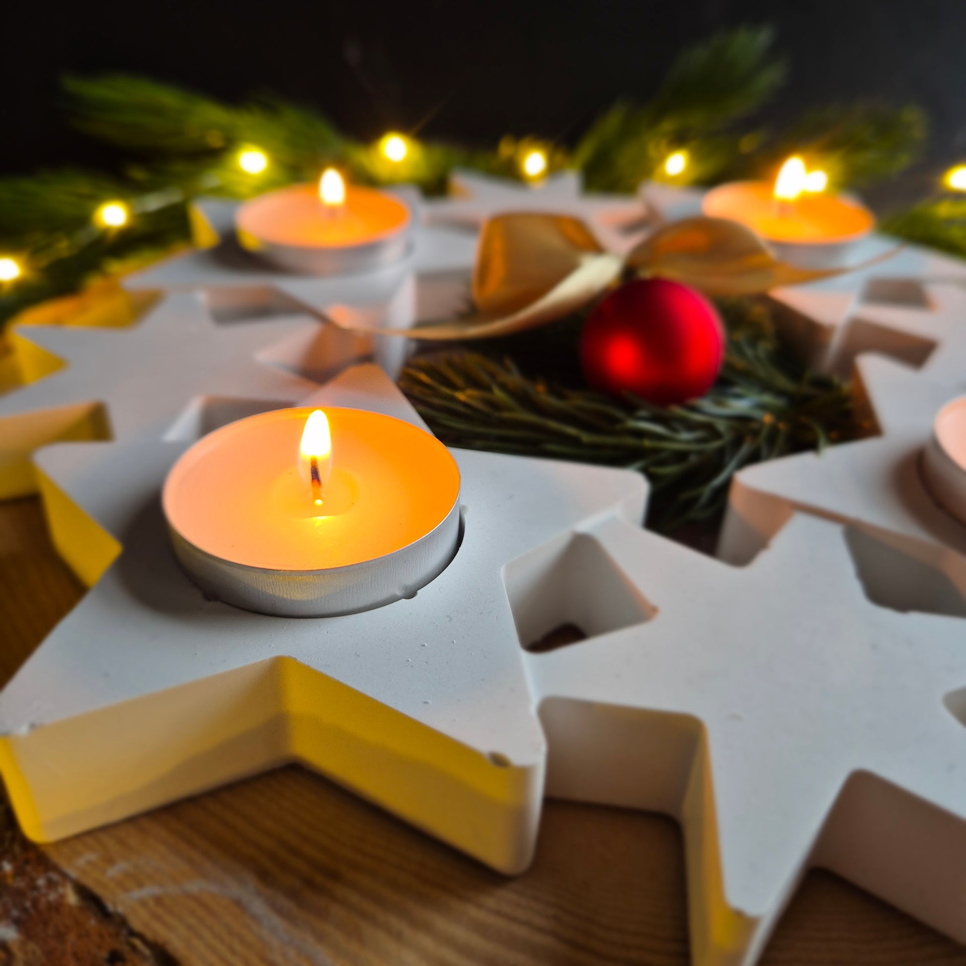 Adventskranz Sterne für 4 Teelichter, aus Gießbeton