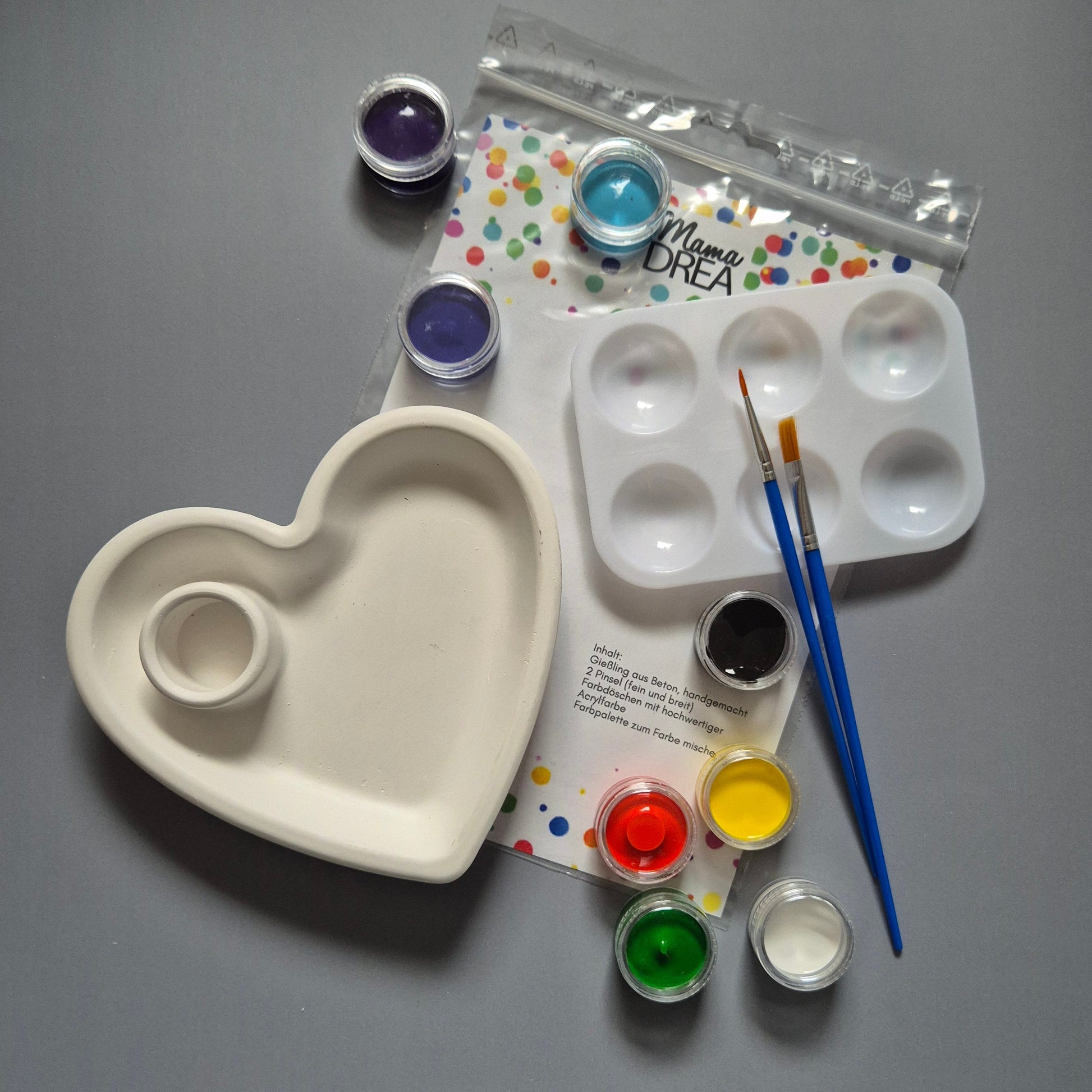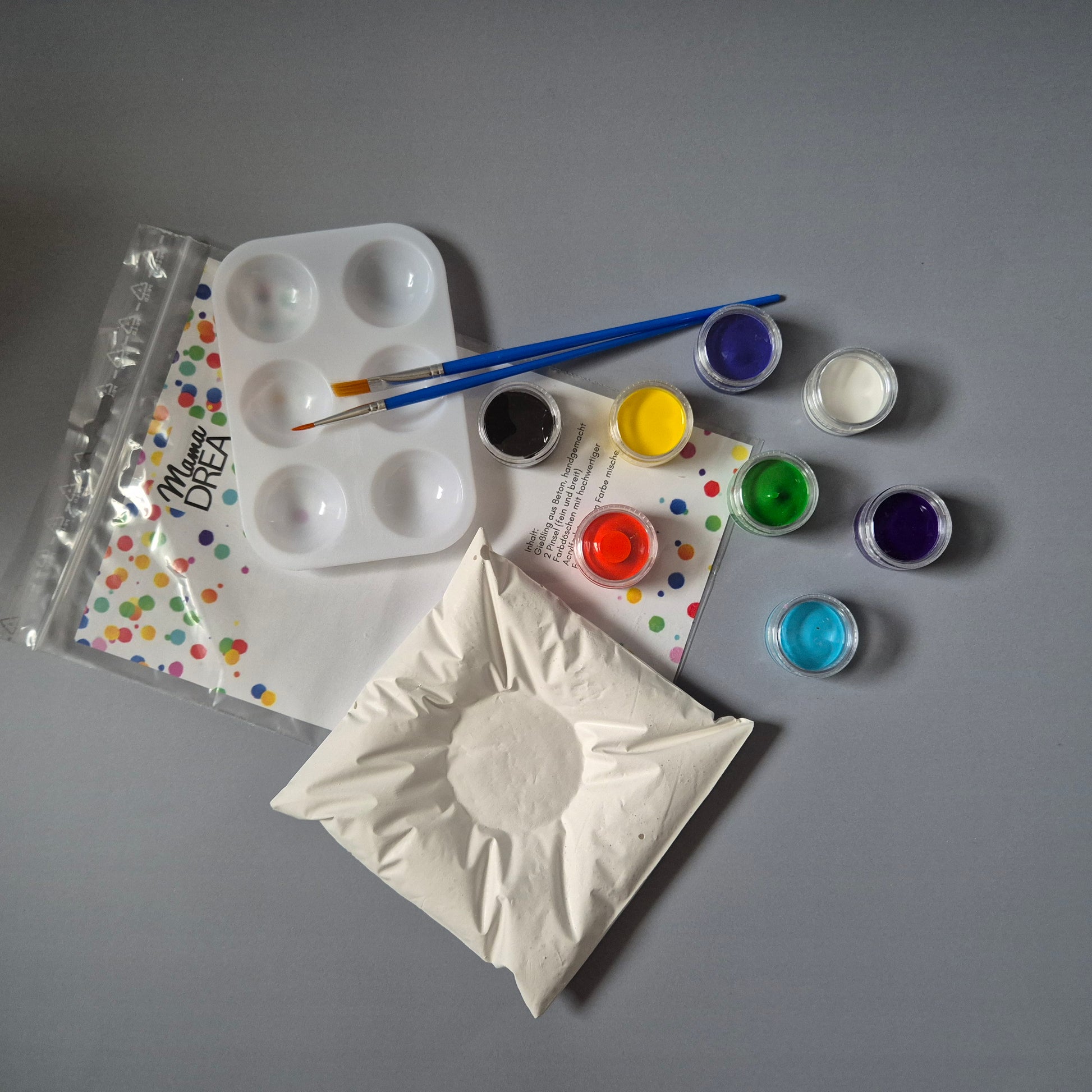 - einen weißen Gießbeton-Rohling, der unbedingt angemalt werden muss
