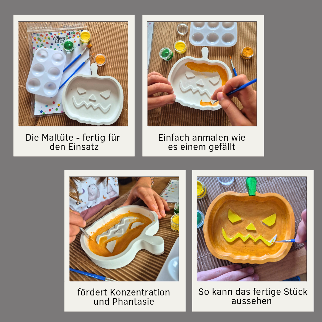 Einfach die angemalten Dekoteller oder Figuren trocknen lassen und später mitgeben - keine übrig gebliebenen Zubehörteile - alles nehmen die Kinder mit heim! —> einfach per Email anfragen und wir schicken euch ein Angebot mit Preisen zu (Lieferzeit ca. 10 Werktage)