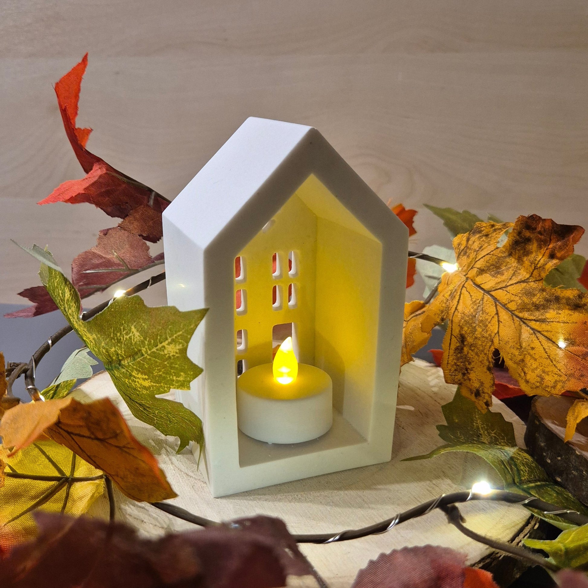 Sehr stillvolle Lichthäuser aus weißer Gießkeramik mit Platz für ein Teelicht