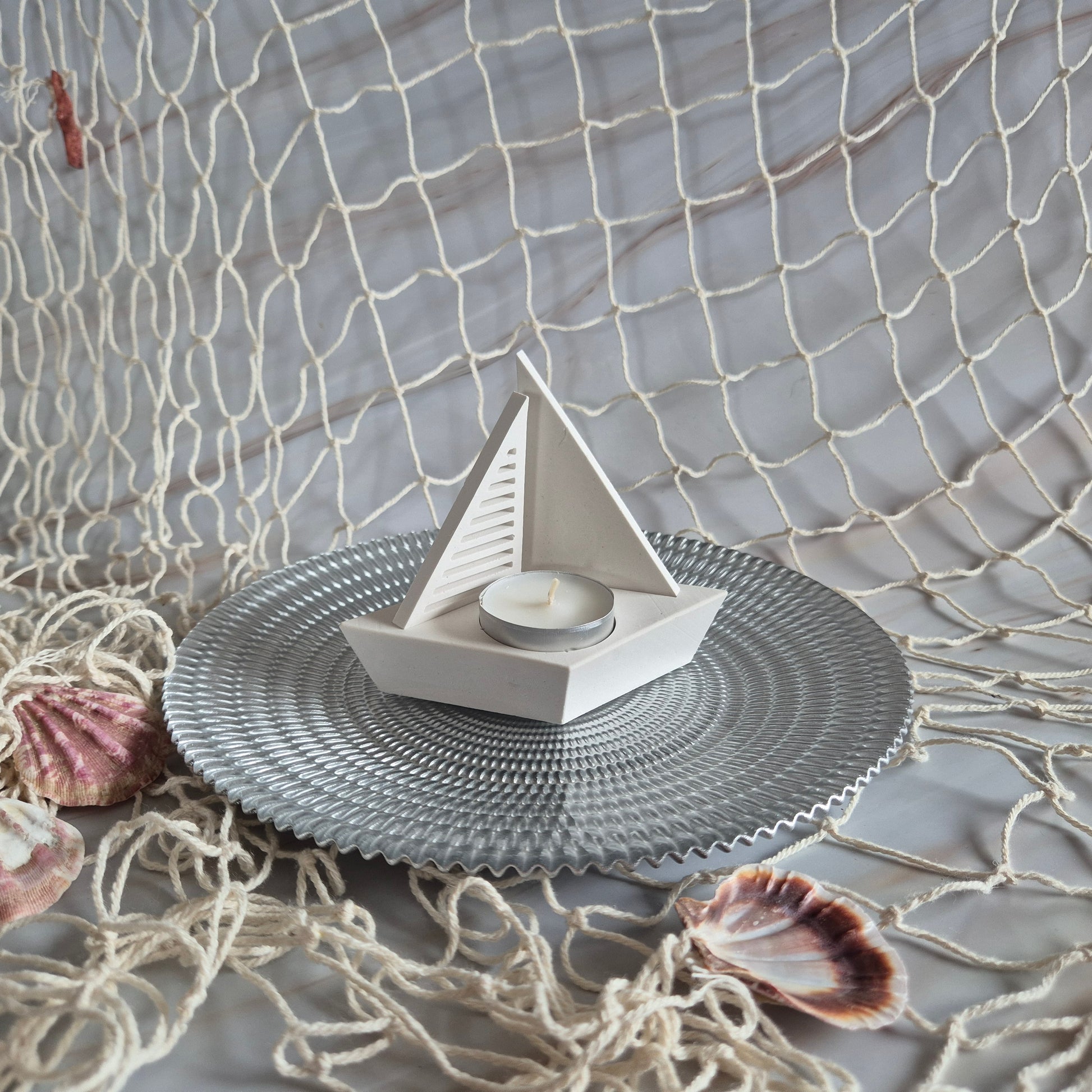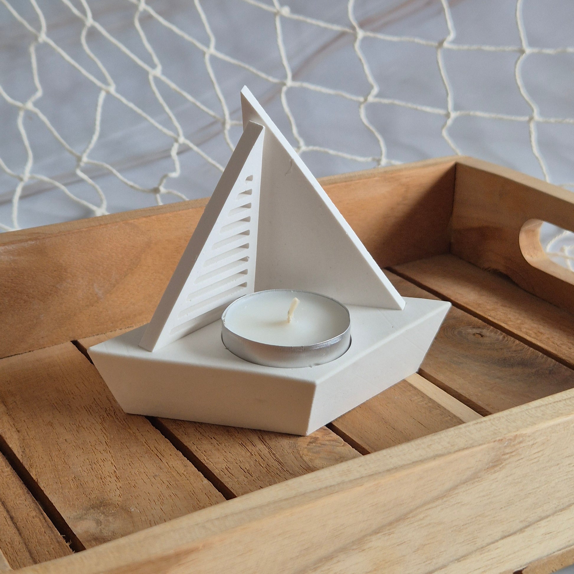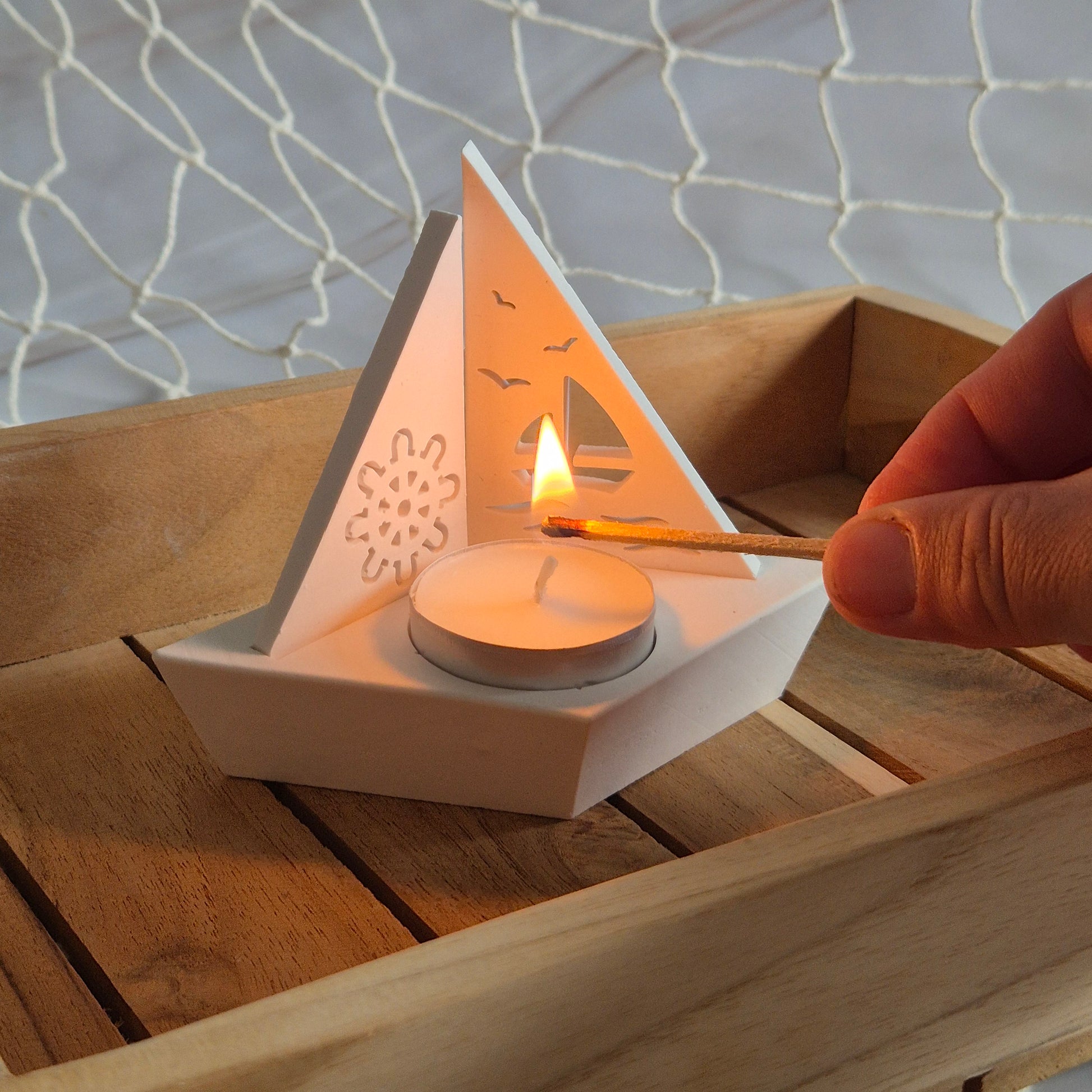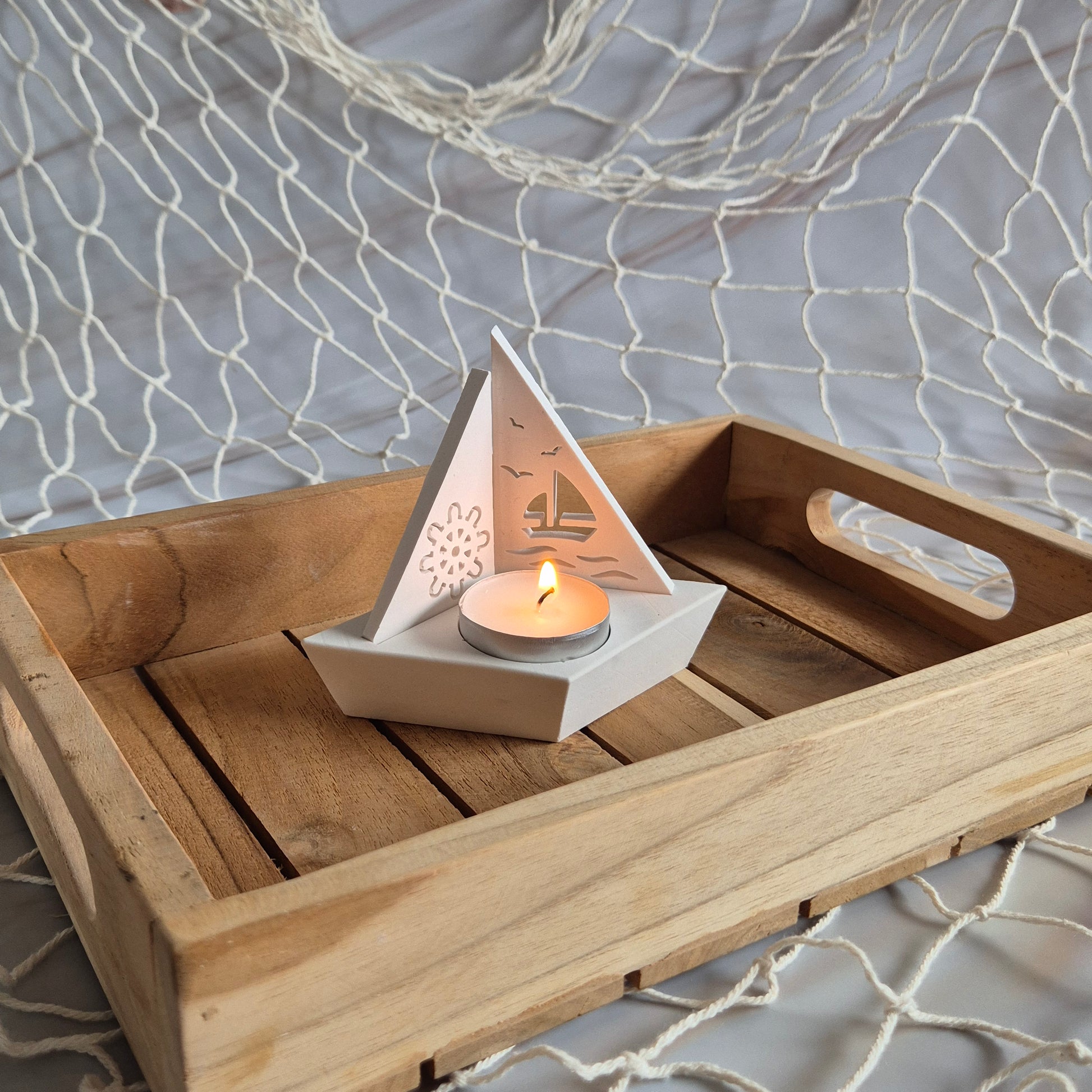 Segelboot mit Teelicht und 2 Segeln zum Wechseln aus Gießkeramik
